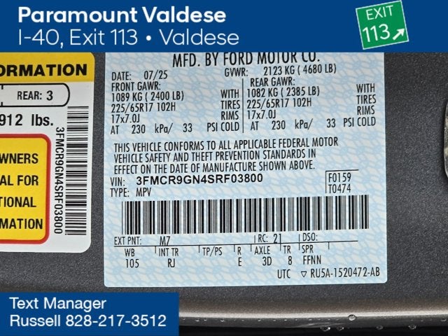- ENGINE: 1.5L ECOBOOST -inc: auto start-stop technology (STD)